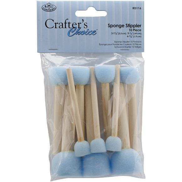 ROYAL BRUSH-Crafter's Choice : ensemble de pointeaux en éponge. Ce paquet contient dix pinceaux pointillés à pointe éponge au total. Sont inclus trois d'un diamètre de 1/4 de pouce, quatre d'un diamètre de 3/4 de pouce et trois d'un diamètre de 1-1/4 de pouce. Tous ont un manche en bois de 2-1/2 pouces de long.