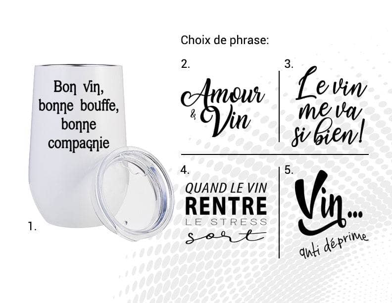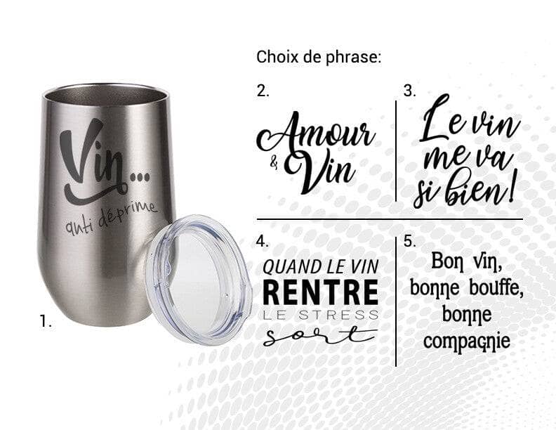 Verre à vin stainless steel blanc sans pied et couvercle de protection.